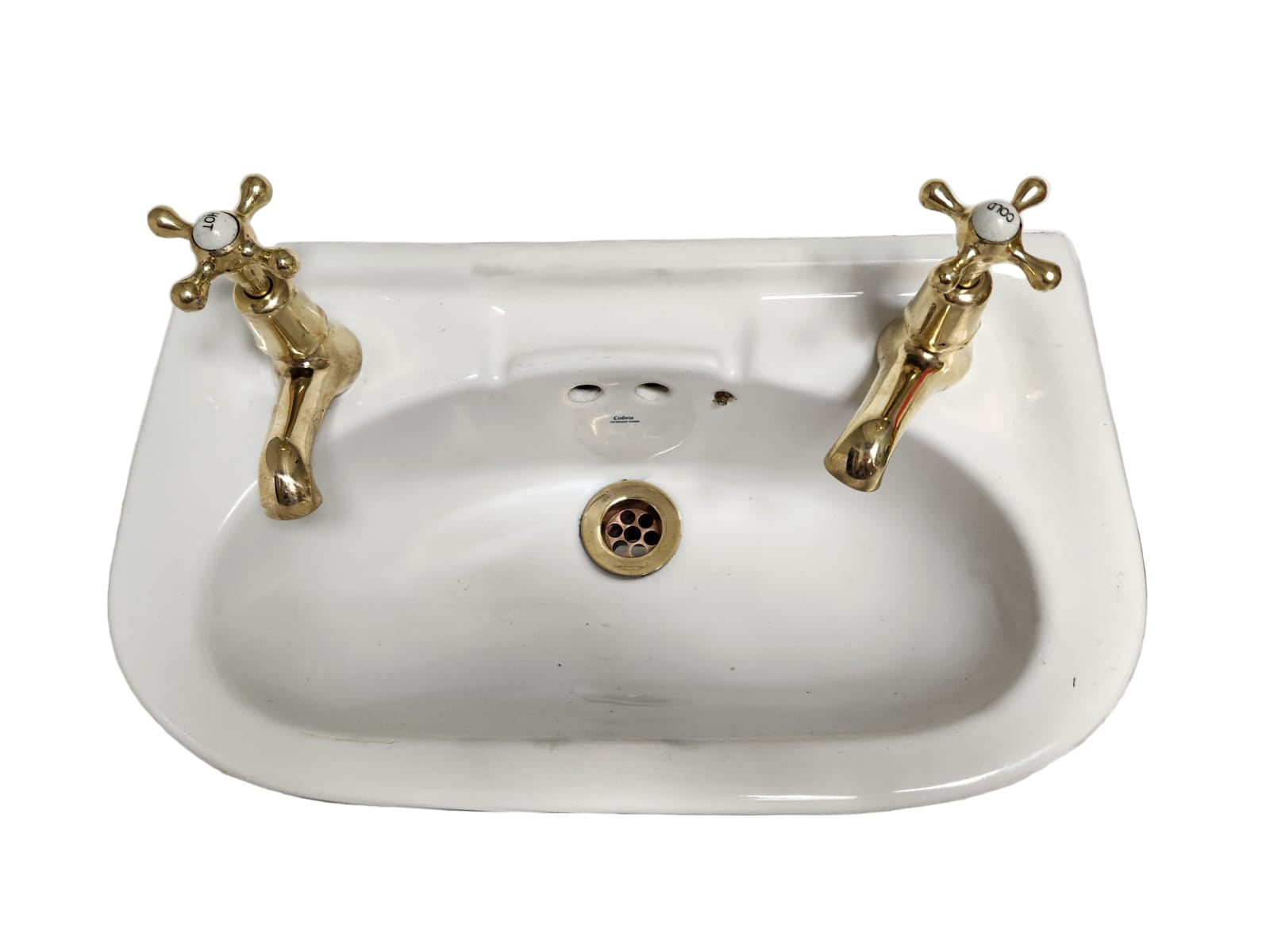 Vintage Basin with Hot & Cold Brass Taps & Brass Grating